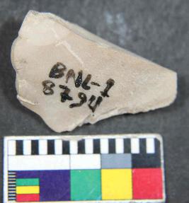 | Description / विवरण | Flake with visible retouching having one dorsal ridge. |