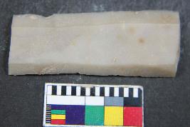 | Description / विवरण | A blade with sharp parallel sides having two dorsal ridge with trapezoidal in section. It has smooth surface. |