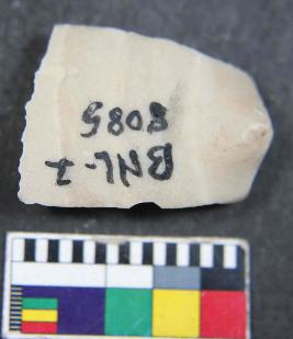 | Description / विवरण | Fragment of blade with sharp parallel sides having two dorsal ridge with trapezoidal in section. It has bulb of percussion on its ventral side and smooth surface. |