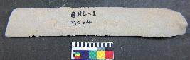 | Description / विवरण | A long blade with parallel sides having two dorsal ridge with trapezoidal in section. It has bulb of percussion on its ventral side and smooth surface. |