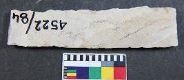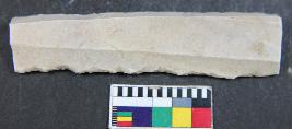 | Description / विवरण | Parallel sided chert blade having two dorsal ridge. |