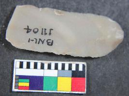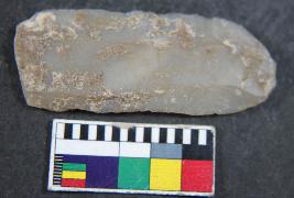 | Description / विवरण | Blade with parallel sides having two dorsal ridges. It has bulb of percussion on the ventral side. |