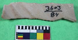 | Description / विवरण | Fragment of chert blade showing thick broad parallel sided, two dorsal is present, trapezi in section and sharp cutting edges. Its surface is smooth. |