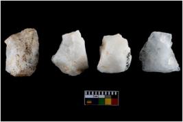 | Description / विवरण | A specimen of a fluted core having several broad fluted marks indicating the detached blades from it |