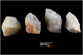 | Description / विवरण | A specimen of a fluted core having several broad fluted marks indicating the detached blades from it |