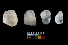 | Description / विवरण | A specimen of a fluted core having several broad fluted marks indicating the detached blades from it |