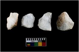 | Description / विवरण | A specimen of a fluted core having several broad fluted marks indicating the detached blades from it |