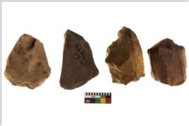 | Description / विवरण | Specimen of a fluted cores showing impressions of blades removed from almost all the sides. |