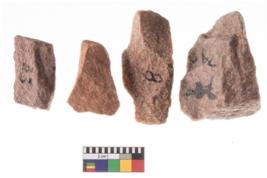 | Description / विवरण | A specimen of flake tool with prominent flaking marks. It made up of a short flakes with sides trimmed. It is rectangular in shaped. |