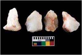 | Description / विवरण | Four flakes; most of them are tapering at one end with few having sharp edges. |