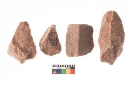 | Description / विवरण | A specimen of flake tool with prominent flaking marks. It made up of a short flakes with sides trimmed. It is rectangular in shaped. |