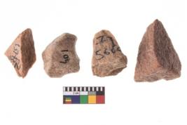| Description / विवरण | A specimen of flake tool with prominent flaking marks. It made up of a short flakes with sides trimmed. It is rectangular in shaped. |