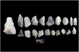 | Description / विवरण | There are n-20 of intact flake cores made up of Quartz. Some of them have bulge of percussion and some are flat flakes. |