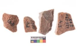 | Description / विवरण | A specimen of flake tool with prominent flaking marks. It made up of a short flakes with sides trimmed. It is rectangular in shaped. |
