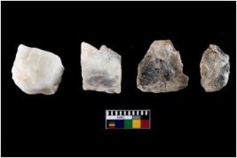 | Description / विवरण | Specimen of a fluted cores having several broad fluted marks indicating the detached blades from it. |