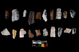 | Description / विवरण | There are n-20 of microliths, among them 9 are quartz, and 11 are of chert. Some of them are partially broken. They show variation in colour, size and shape. Some of them are blunted back blades, points, triangles, trapezes, crescent and truncated blades. |