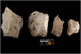 | Description / विवरण | Specimen of a cores with several broad fluted marks. The reverse bulb and platform can be seen. The flake scars are seen on all sides. |