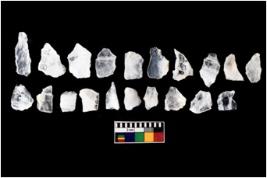 | Description / विवरण | There are n-20 of intact flake cores made up of Quartz. Some of them have bulge of percussion and some are flat flakes. |