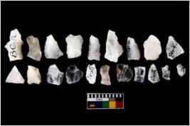 | Description / विवरण | There are n-20 of intact flake cores made up of Quartz. Some of them have bulge of percussion and some are flat flakes. |