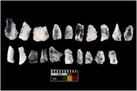 | Description / विवरण | There are n-20 of intact flake cores made up of Quartz. Some of them have bulge of percussion and some are flat flakes. |