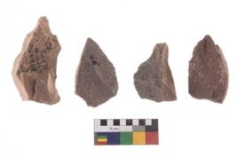 | Description / विवरण | A specimen of flake tool with prominent flaking marks. It made up of a short flakes with sides trimmed. It is rectangular in shaped. |