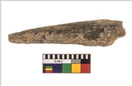 | Description / विवरण | A partially broken specimen of a worked bone. |