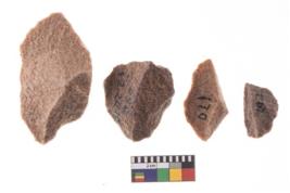 | Description / विवरण | A specimen of flake tool with prominent flaking marks. It made up of a short flakes with sides trimmed. It is rectangular in shaped. |