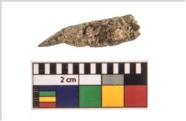 | Description / विवरण | A partially broken specimen of a bone point made on a thick splinter of bone by grinding. It has a chipping marks. |