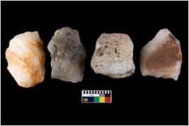 | Description / विवरण | Four cores; most of them are uneven with flakes removed from few sides. |