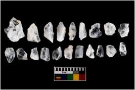 | Description / विवरण | There are n-20 of intact flake cores made up of Quartz. Some of them have bulge of percussion and some are flat flakes. |