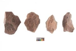 | Description / विवरण | A specimen of flake tool with prominent flaking marks. It made up of a short flakes with sides trimmed. It is rectangular in shaped. |