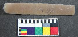 | Description / विवरण | Parallel sided chert blade with having two dorsal ridges. |