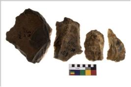 | Description / विवरण | Four worked utilised flakes with sharp edges. |