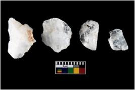 | Description / विवरण | Four utilised worked flakes with sharp edges. Some of them are tapering at one end. |