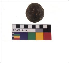 | Description / विवरण | A complete specimen of a sling ball having rough surface and reddish black colour. |