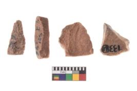 | Description / विवरण | A specimen of flake tool with prominent flaking marks. It made up of a short flakes with sides trimmed. It is rectangular in shaped. |