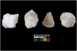 | Description / विवरण | Specimen of a fluted cores having several broad fluted marks indicating the detached blades from it. |