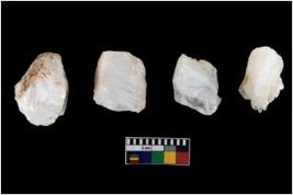 | Description / विवरण | Specimen of a fluted cores having several broad fluted marks indicating the detached blades from it. |