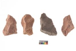 | Description / विवरण | A specimen of flake tool with prominent flaking marks. It made up of a short flakes with sides trimmed. It is rectangular in shaped. |