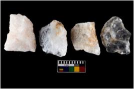 | Description / विवरण | There are n-4 of intact flake cores made up of Quartz. Some of them have bulge of percussion and some are flat flakes. |