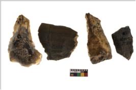 | Description / विवरण | Four worked utilised flakes with sharp edges. |