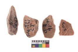 | Description / विवरण | A specimen of flake tool with prominent flaking marks. It made up of a short flakes with sides trimmed. It is rectangular in shaped. |