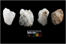 | Description / विवरण | Four utilised worked flakes with sharp edges. Some of them are tapering at one end. |