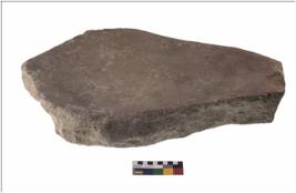 | Description / विवरण | A partially broken specimen of a saddle quern it is made of granite , it has a grinding marks. |