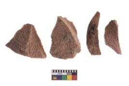 | Description / विवरण | A specimen of flake tool with prominent flaking marks. It made up of a short flakes with sides trimmed. It is rectangular in shaped. |