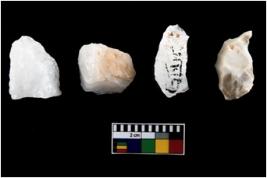 | Description / विवरण | Four utilised worked flakes with sharp edges. Some of them are tapering at one end. |