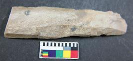 | Description / विवरण | Parallel sided chert blade with slightly cruved surface having two dorsal ridges. |