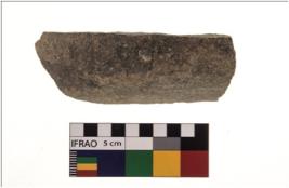 | Description / विवरण | A partially broken specimen of a muller , it is oblong in shpe, it is made of quartzite. |