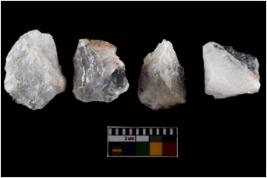 | Description / विवरण | There are n-4 of intact flake cores made up of Quartz. Some of them have bulge of percussion and some are flat flakes. |