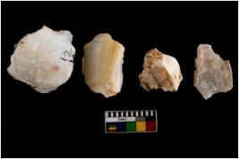 | Description / विवरण | Specimen of a cores with several broad fluted marks. Some of them are tapering at one end. |